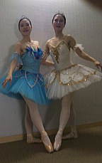 みゆきさま・いずみさま 『'04 8/21の発表会で踊った時の写真です。アトリエチュチュさんにサタネラ・ダイアナとアクティオン・コッペリアの衣裳とティアラをお願いし、作って頂きました。わがままな注文にもしっかり対応して下さり希望通りの衣裳に大満足です!! 楽しい発表会となりました。ありがとうございました。』 |
