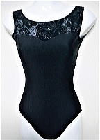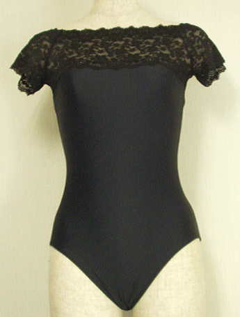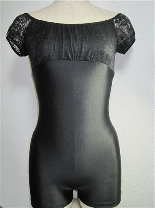 L-13-G(キャップスリーブラグランペザントタイプレース地) ¥6,050 レース色:黒 *写真は一分丈ユニタード¥7,150 |