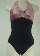| L-27(ホルターネック 後ろドットボタン) 切り替え上ベロア使用: ¥5,060 *写真は上:ストレッチベロア クラッシュマーブル黒 |