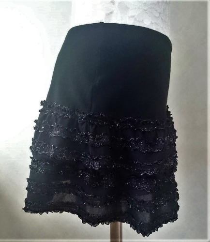 | P-58(フリルパンツ)¥3,500 サイズ:S・M・L 色:黒(フリル部分にシルバー ラメ入り) |