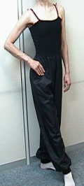 LP-01(一分丈スパッツ) ¥2,500 レオタードページの生地からお選びいただけます。 サイズ:S・M・L ウエストゴム (七分丈スパッツ)¥3,500 *写真はオペロン系オフ白 ユニタード感覚 |
